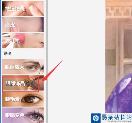 4、在菜單里找到美容菜單,點擊美容菜單在其內找到眼部飾品選項,如圖所示: