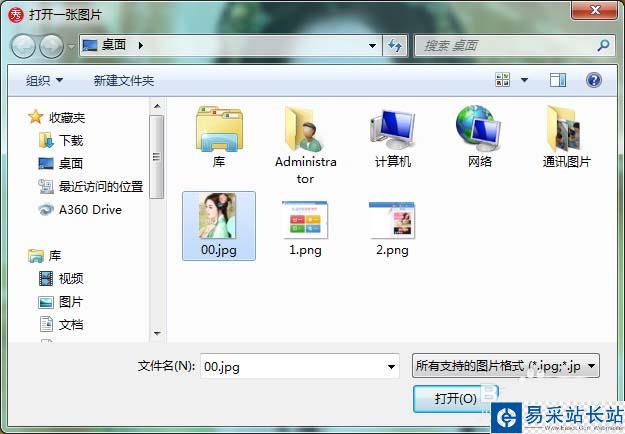 3、點擊打開選項,在彈出的對話框內(nèi)找到我們需要的圖片,如圖所示: