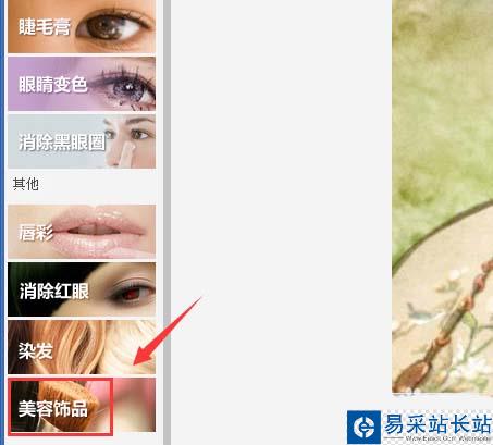 4、再在美容菜單里找到美容飾品選項,如圖所示: