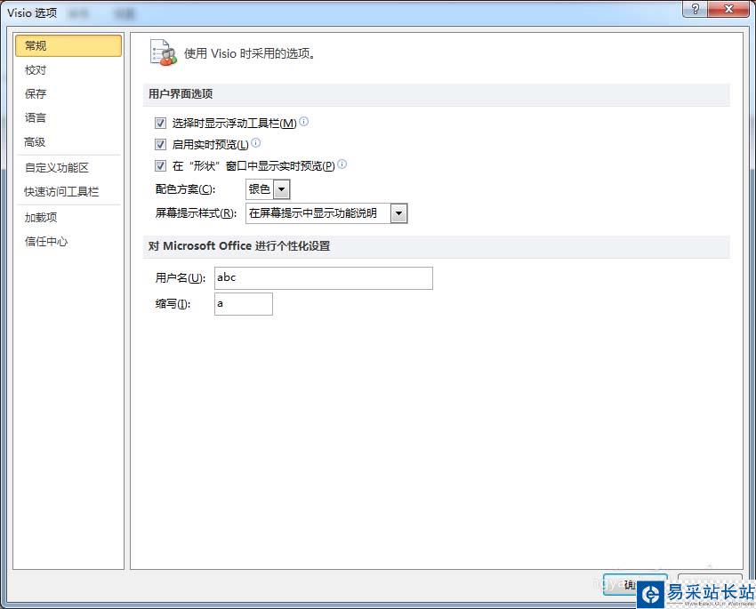 3、點擊【選項】功能菜單,彈出Visio選項對話窗口,如下圖所示。
