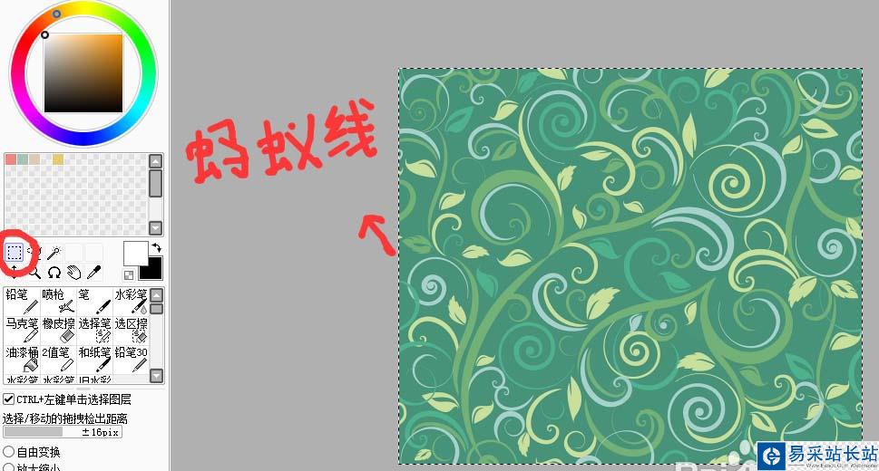 5、要想把圖片發到原本的紙中,就用矩形套索工具,螞蟻線即被包含,然后crtl+c(復制)