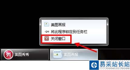 2、如果你覺得美圖畫報還是很有用的,不需要徹底將其關閉;那么在電腦任務欄找到畫報標簽,右擊—關閉。