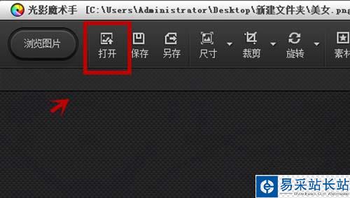 2、在光影魔術手中單擊打開,在打開對話框中選擇圖片打開。