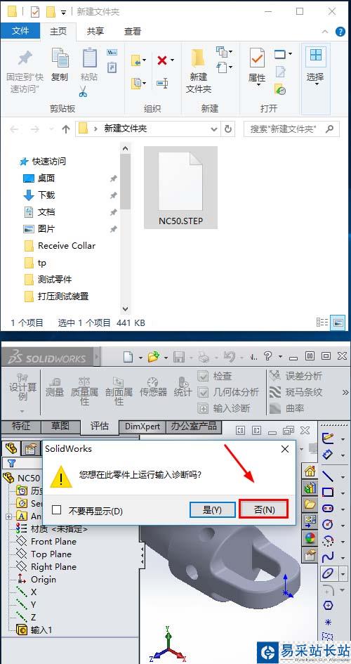 1、將STP格式的文件,拖到solidworks中,如圖所示