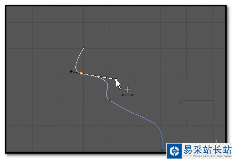 1、上面我們已認識了如何添加點。我們添加點后,點上有兩條手柄。鼠標點住其中一個手柄的端點,點住不放手,拖動手柄,可以使這一段的線變形。