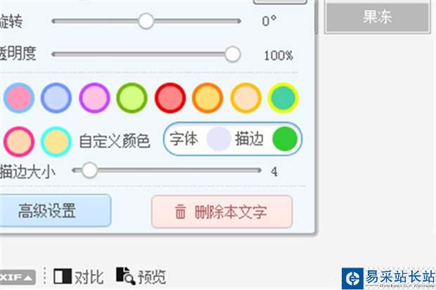 5、輸入以后,點擊文字右上方的描邊效果。 再在描邊的選擇項里選擇字體顏色與描邊的顏色。并將字體與描邊大小做相應的調節。