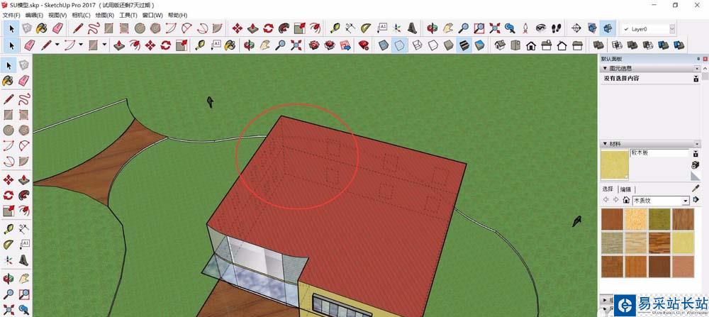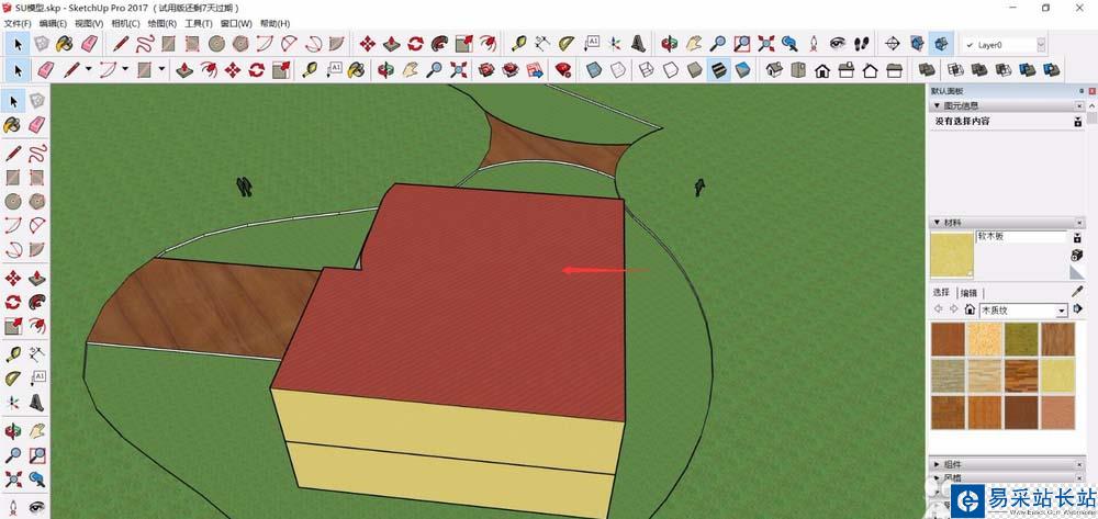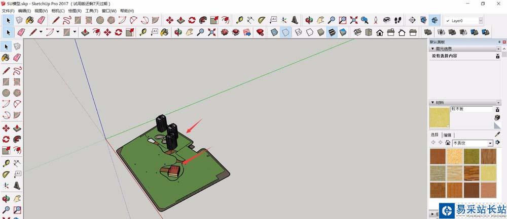 3、開啟我們制作好的模型,我們可以看到SketchUp的繪圖工作區出現了我們的模型,使用滑輪進行擴大,調整到合適的視角。