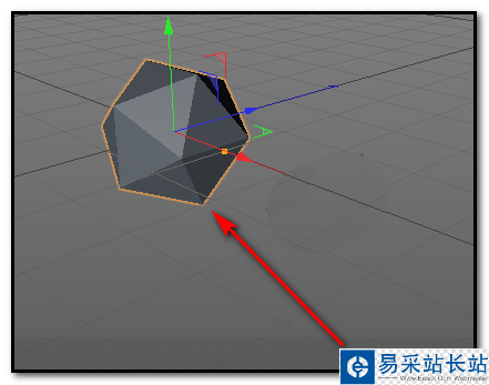 1、在視圖上添加一個寶石物體;假設,現在要以下圖中箭頭所指的角為中心點旋轉物體。