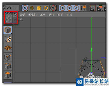 2、物體上,Y軸、X軸、Z軸相交的點是軸心;按下R鍵,旋轉物體。我們把視圖切換到正視圖中比較好看些,按F4,切換到正視圖。