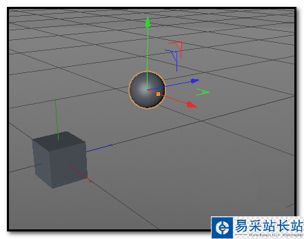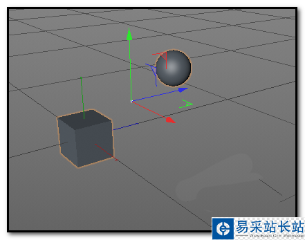 6、關閉對話框;我們可以看到,現在坐標軸顯示在立方體上;若想顯示在球體上,又怎樣操作呢?在界面右上方這個面板這里,點開組,展開球體和立方體,鼠標點下球體,這時,球體上顯示出坐標軸了。若想立方體顯示坐標軸,再點下立方體即可。