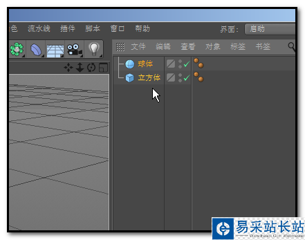 2、在操作界面右上方這里,鼠標框選中:立方體與球體,這時,兩個物體同時選中了。