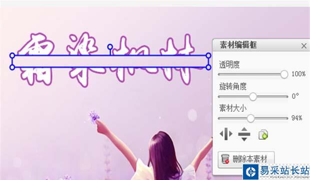 6、拉好以后,再點擊輸入文字,輸入字中字的小字部分 ,比如圖中的“SHUANG RAN FENG LIN”,輸入好以后,調節一下字體的大小以及格式,然后右鍵點擊圖片,合并當前素材。字中字就制作好了。