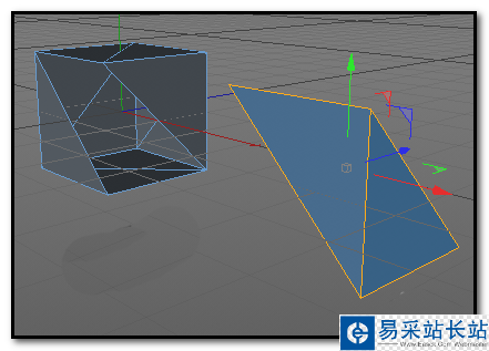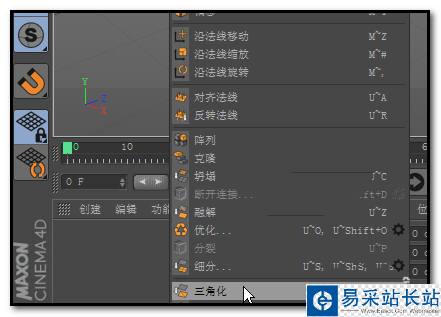 3、鼠標在場景中右擊,彈出菜單點:三角化。這時,立方體上多了一些線。把立方體分割成多個面。