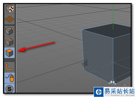 2、按住ALT,再點布爾,把立方體做布爾的子級。然后,選中立方體,再在界面左側點:多邊形圖標