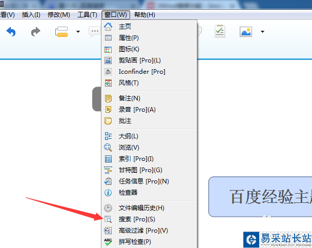 2、選中菜單中了之后,彈出了下拉菜單中進行選擇為“”搜索“”的選項菜單。