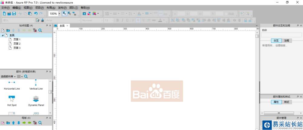 1、首先打開Axure,我們能很清楚的看到Axure的功能分區,在中央白色操作去講我們需要制作的圖片拷貝進去。