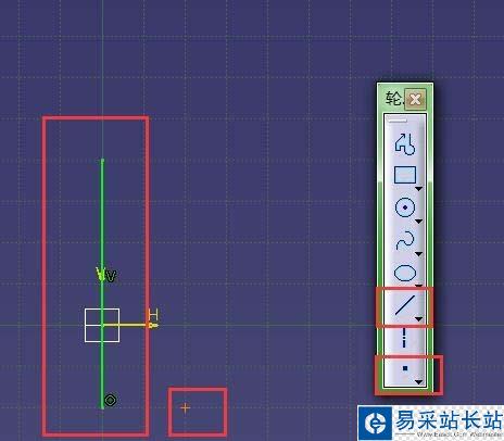 4、分別用工具欄中按鈕,創建圖示直線,作為螺旋線中線;創建點,作為螺旋線起點。注意:要創建直線而不是軸線,否則退出草圖編輯器,看不到軸線。