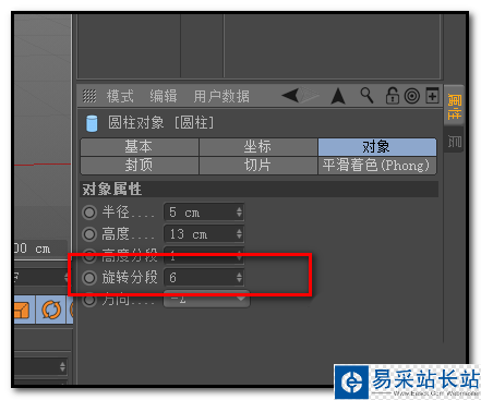 2、添加圓柱;現在的圓柱方向不對,我們要調下,在圓柱的屬性面板這里;把圓柱方向調為-Z