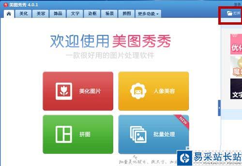 1、打開美圖秀秀,在美圖秀秀中單擊【打開】