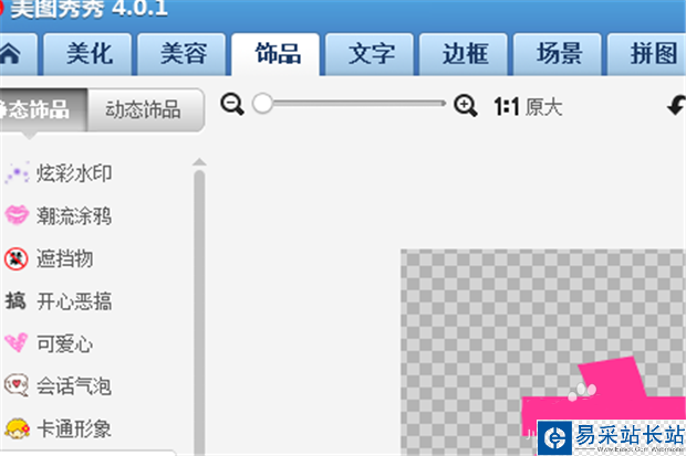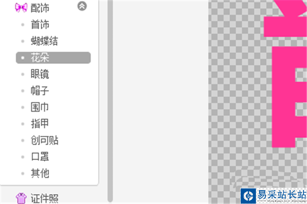 5、接下來,點擊菜單欄里的飾品選項,選擇一個比較卡通的小飾品,加在文字上面。這里要注意,顏色的搭配。加上以后還要調節一下素材的大小。