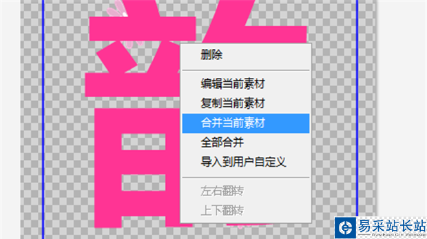 6、搭配好以后,點擊鼠標右鍵,選擇合并當前素材,并將圖片進行保存。個性字體頭像就完成制作了。