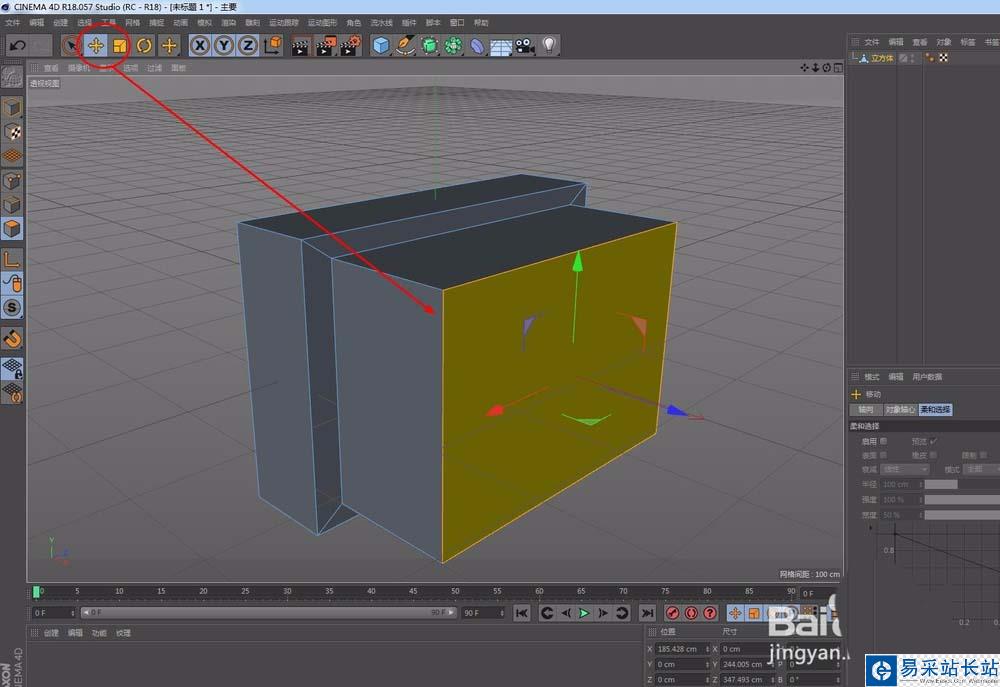 1、打開C4D軟件,我使用的版本是R18,在工作區建立一個立方體,調整合適的大小。
