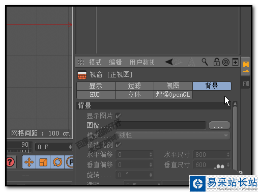 1、我們打開軟件,F4切換到正視圖中,SHIF+V,調出正視圖窗口面板,然后,再點:背景。接著,點“圖像”的按鈕,把目標圖片給導入進來 。