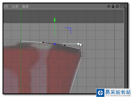 5、我們只描繪花瓶的一邊即可,按下E鍵,結束畫筆。接下來,我們調節樣條線的弧度;放大視圖,按E鍵,移動工具,鼠標點下目標錨點,如圖中所示,再右擊,彈出菜單點:柔性插值。錨點之處本來比較硬的,現在有了弧度了。在第一個錨點與第二個錨點之間,也不夠弧度,我們可以在這里添加一個錨點,把樣條線提上一點,