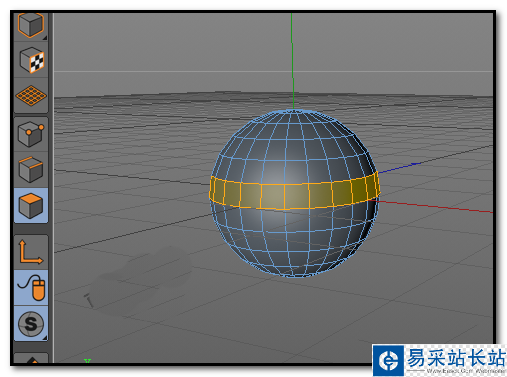 2、按UL,調出循環選擇工具,然后,在面層級狀態下。鼠標放在其中一個面上,點擊下,這時,整個球體的這一圈的所有面都選中了。PS:如果想要連續選中多圈的面,我們按住SHIFT鍵再點擊面即可。