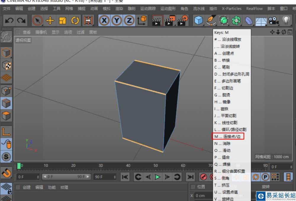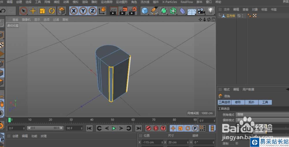 2、用環狀選擇(UB),為立方體的一組邊加一條中間線。