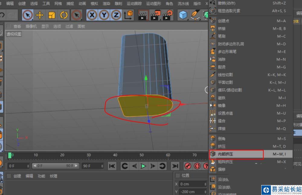4、對底部進行擠壓,分別先用內部擠壓出壁厚,再用擠壓向上建出底部的凹位。