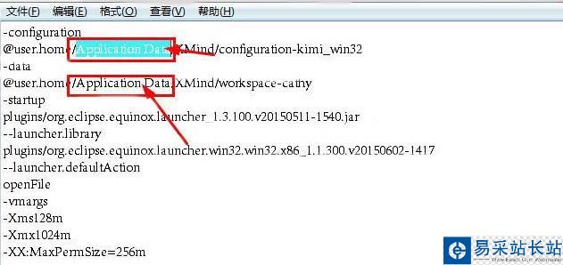 用記事本打開(kāi)兩個(gè)文件:“XMind.ini”和“XMind-original.ini”。