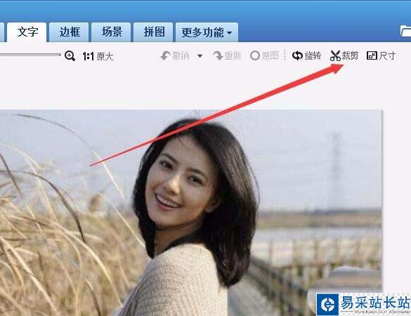 2、選擇我們要裁剪的照片文件,打開照片后點擊右上角的“裁剪”按鈕。