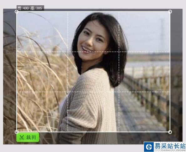 3、這時可以看到在照片上出現了剪裁的邊框,拖動邊框到合適的大小即可。
