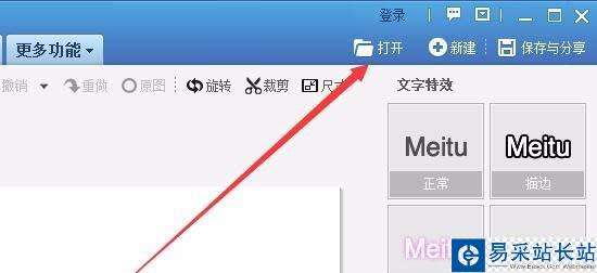 1、首先在電腦上打開美圖秀秀,然后點擊右上角的“打開”按鈕。