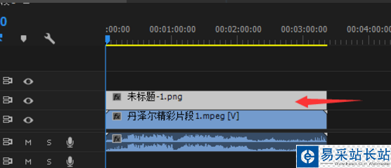3、然后把視頻拖動到時間軸上面,拖動完視頻之后接著把水印圖片拖過去。