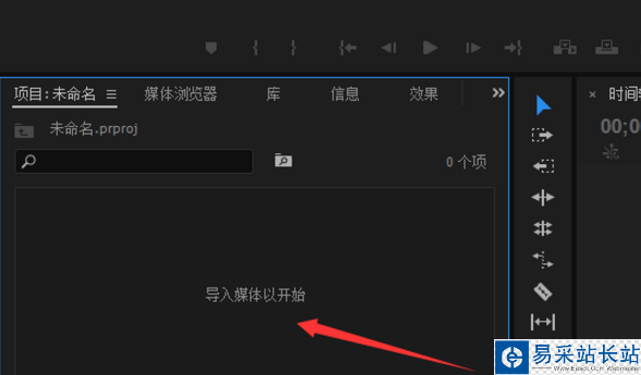 1、首先打開adobe premiere軟件,然后導入一個需要添加水印的視頻素材,如圖所示,