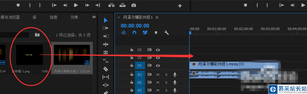 2、在文件夾找到視頻導入之后,繼續雙擊導入一張水印圖片,