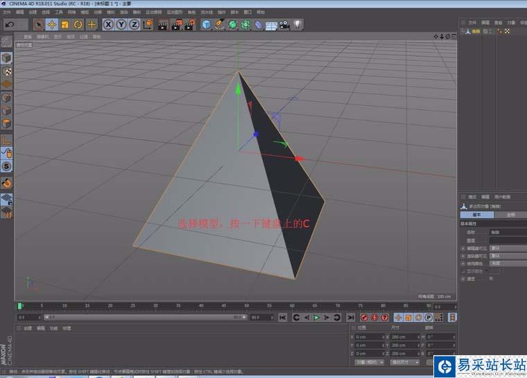 2、選擇模型,并按一下鍵盤上的C,切換至可編輯狀態(tài)。