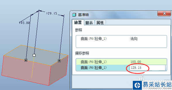 5、調(diào)整好以上參數(shù)后,點擊確定,基準軸如下所示。