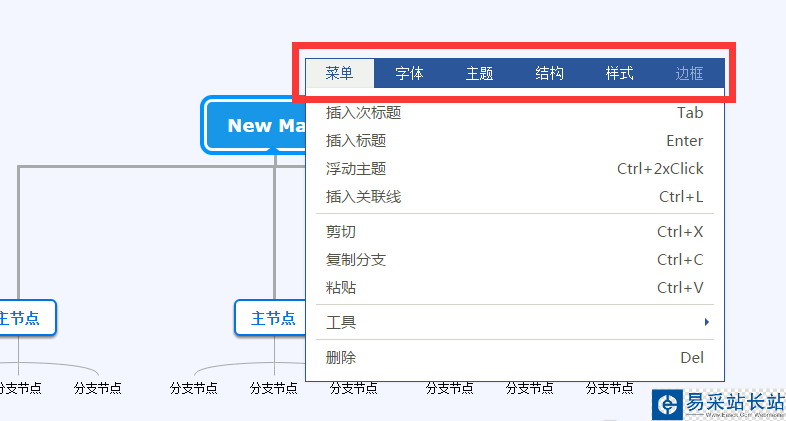 2、在主題節點上右擊鼠標,彈出這個菜單欄;