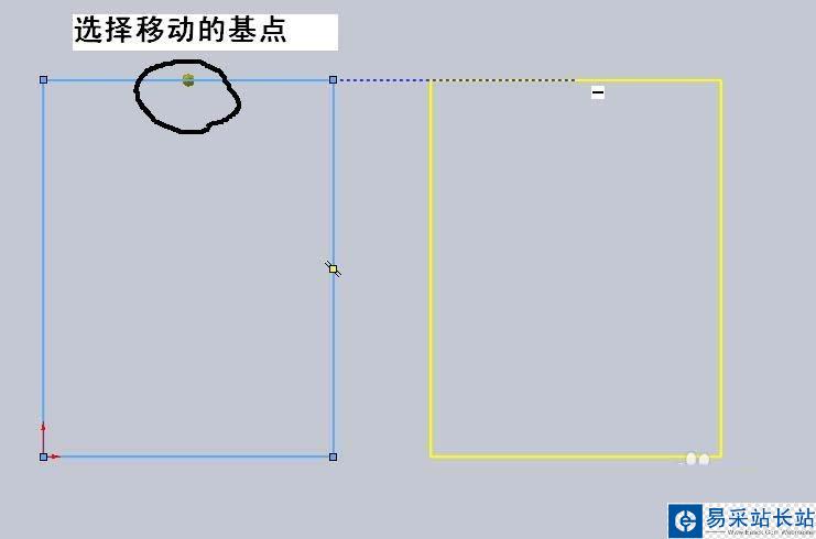 5、選擇屏幕中的一個點,中點或者角點都可以,然后你用鼠標移動就可以看到實體的復制了,想復制多少都可以,直到你取消復制結束。