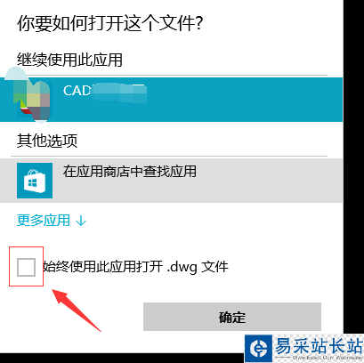 2,然后在彈出來的選擇應用里邊,選擇需要的打開軟件,比如CAD軟件。并且勾選"始終使用此應用打開"