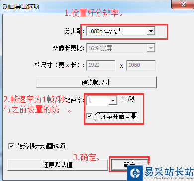 5、設(shè)置好分辨率參數(shù),幀速率為1幀/秒,與前面的設(shè)置統(tǒng)一。按“確定”