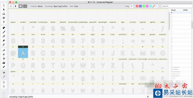首先就要選擇你需要的字母和符號。然后就可以開始一個個設(shè)計字體了。