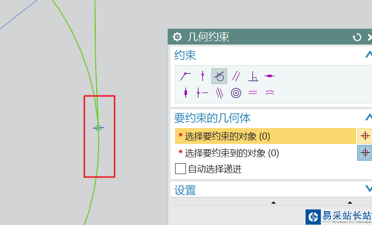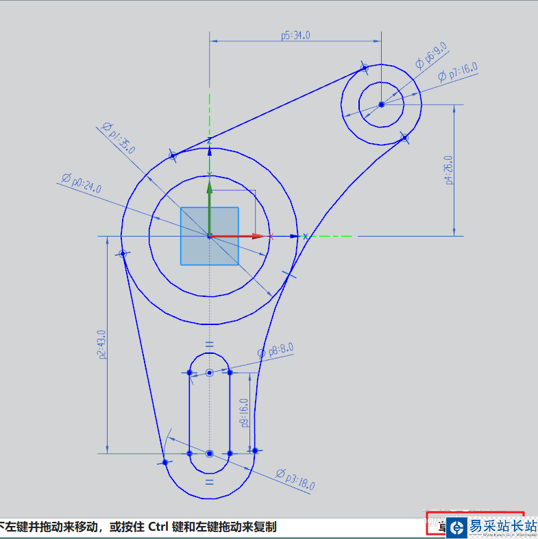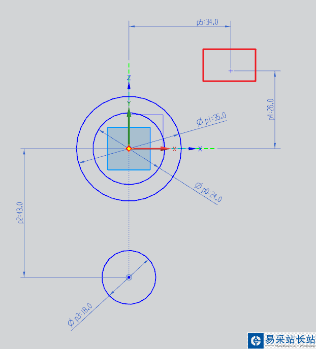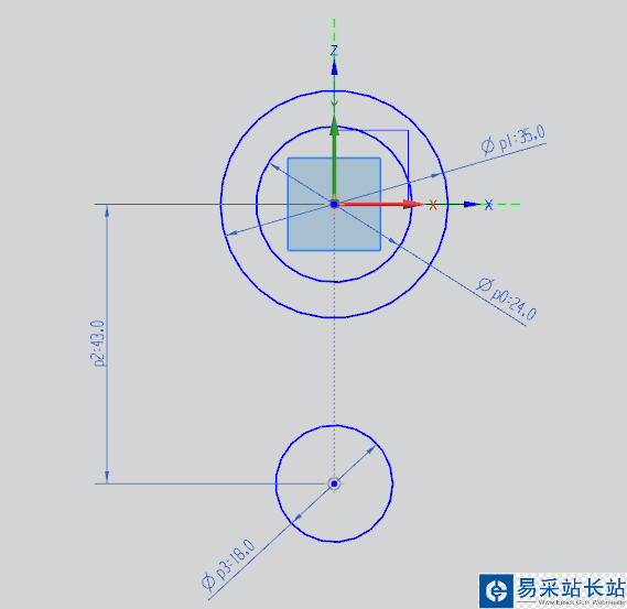 3、在Y的負軸上繪一直徑為18的圓,距離原點:43.如果所繪的圓沒在Y軸上,可用點在線上進行約束。