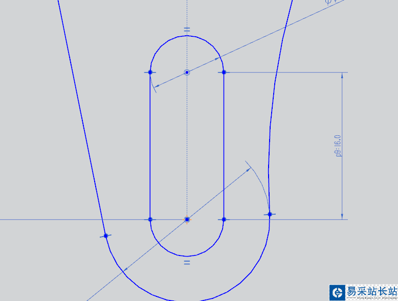 7、用修剪曲線,對Y軸下的圓進行修剪;在Y軸負方向上繪兩等徑的小圓,定位好后用直線從兩側相連,再用修剪曲線將多余的線修剪掉。草圖完全約束,完成草圖的繪制。