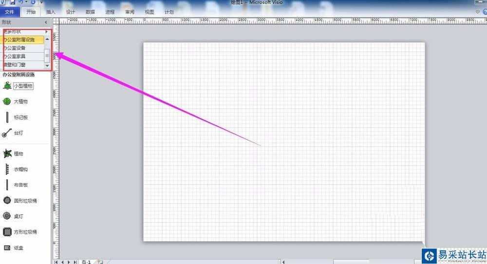 4、如果辦公室有植物、臺燈、垃圾桶等附屬設(shè)施,也可以添加至繪圖區(qū)域。