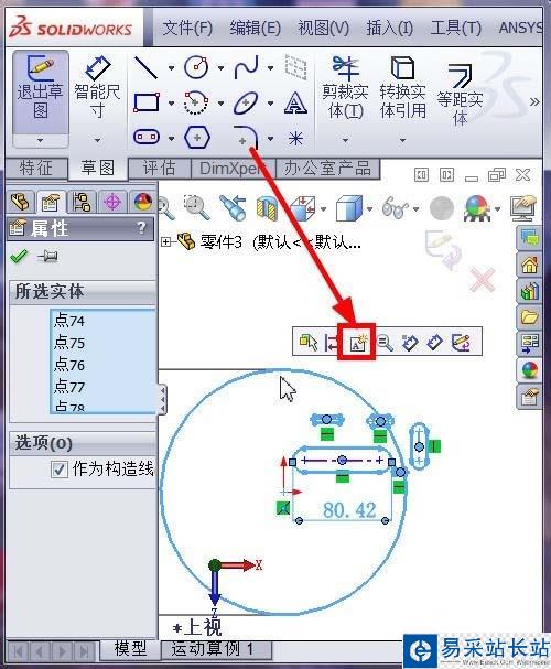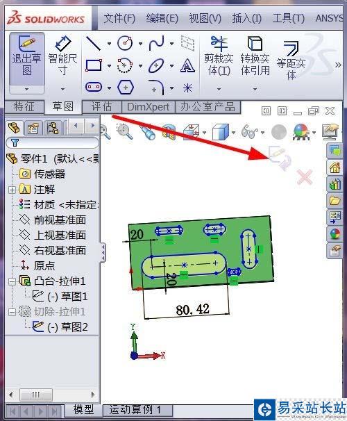 2、我這里要將全部腰形槽的草圖,復制到另外一個零件中,重新建立模型,首先,在編輯草圖模式下,如圖所示