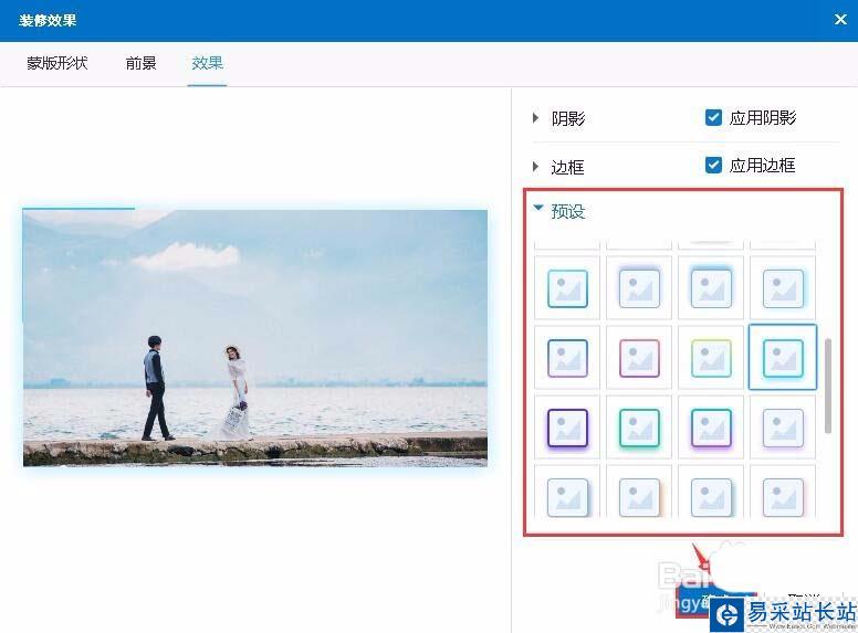 適當(dāng)為圖片設(shè)置陰影和邊框效果可以加深觀眾對動畫視頻的印象。萬彩動畫大師提供多種圖片預(yù)設(shè)效果,點(diǎn)擊即使用,“確定”保存設(shè)置。